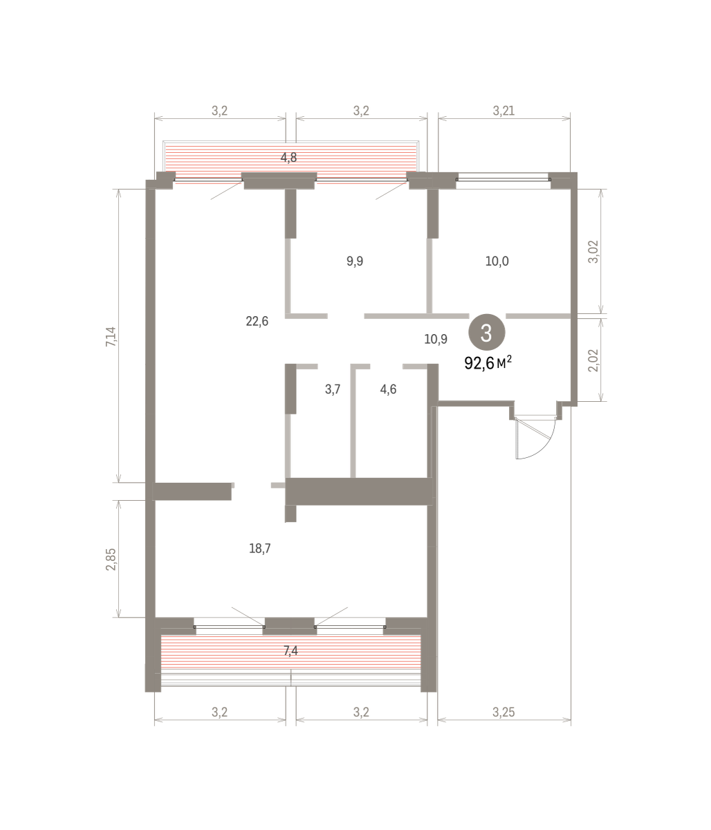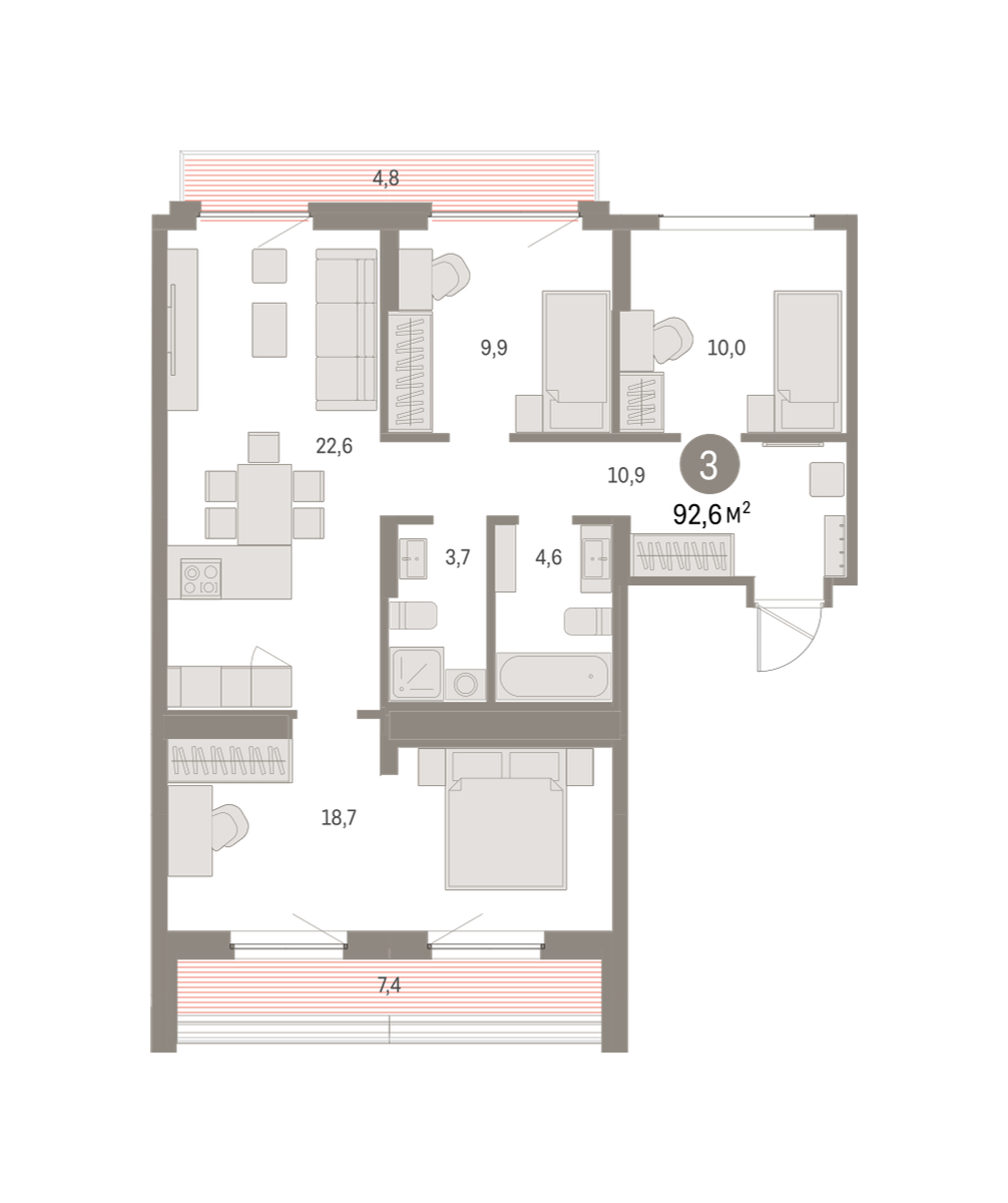 Продаётся с кладовой. Квартира с кухней-гостиной и тремя спальнями в Бруснике в Академическом. Особенности планировки: второй санузел, окна на две стороны, предчистовая отделка. № квартиры в нашей базе: АКД05-Ж6.8.4.