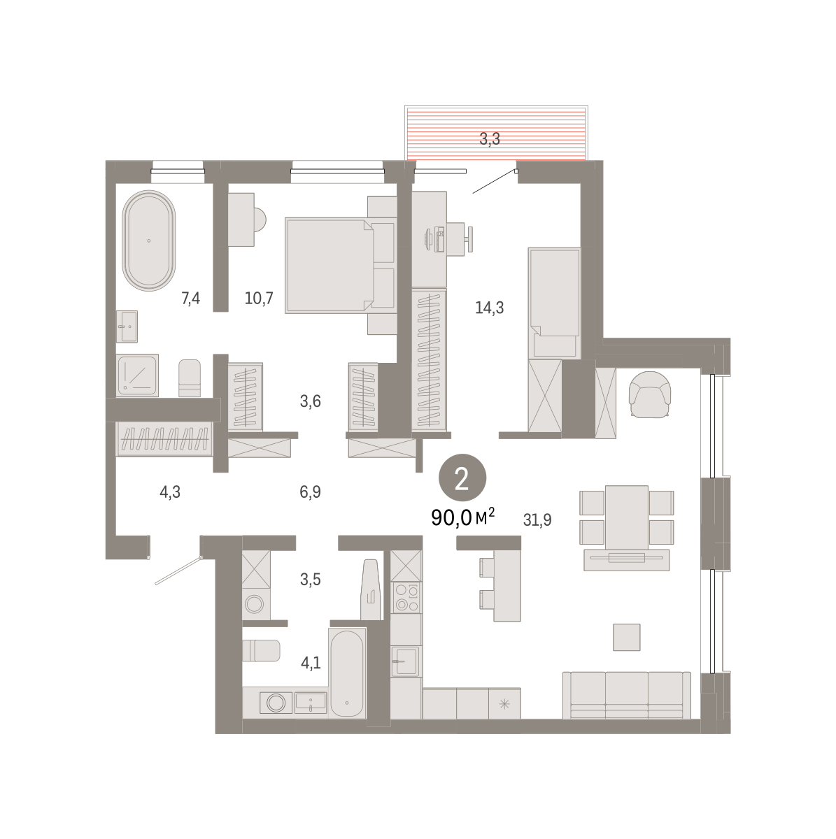 3-к квартира | 88.80 м² | 7 - 29 эт.