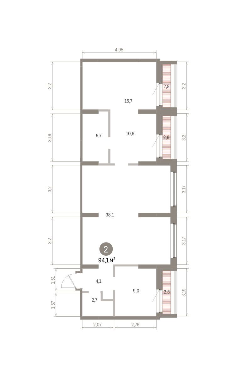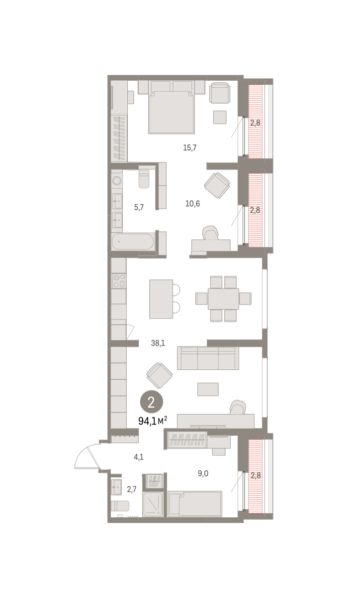 Продаётся с кладовой. Квартира с кухней-гостиной и двумя спальнями в Бруснике в Академическом. Особенности планировки: второй санузел, предчистовая отделка, рабочий кабинет. № квартиры в нашей базе: АКД05-Ж3.2.3.