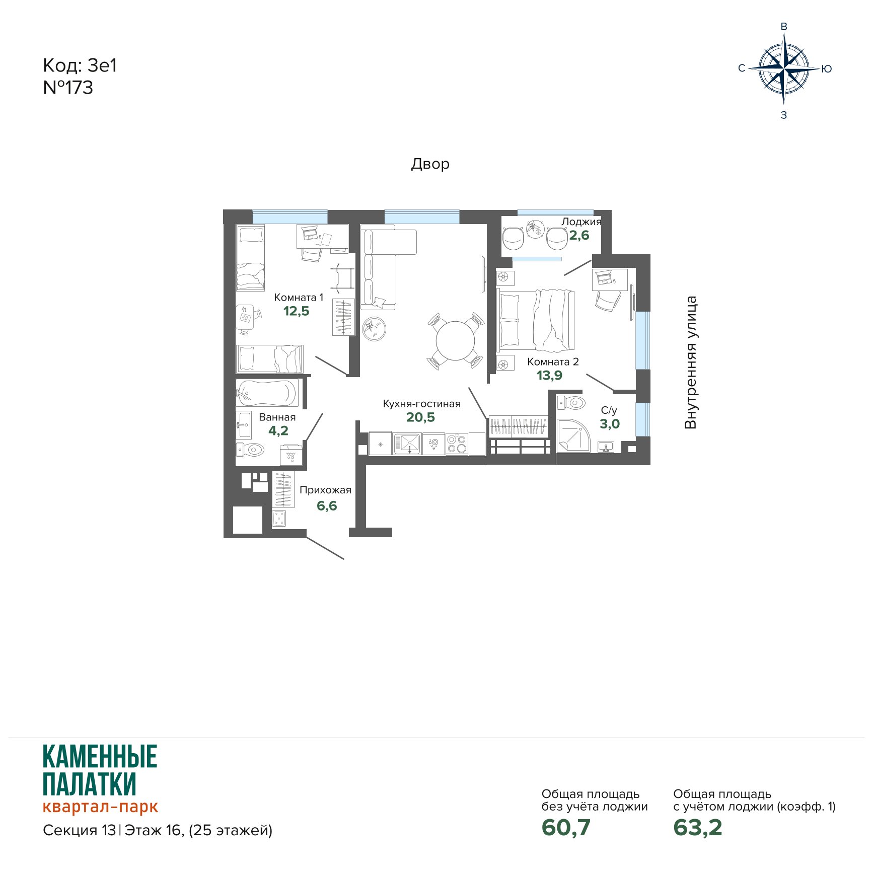 63.23 м² | 16 - 25 эт.