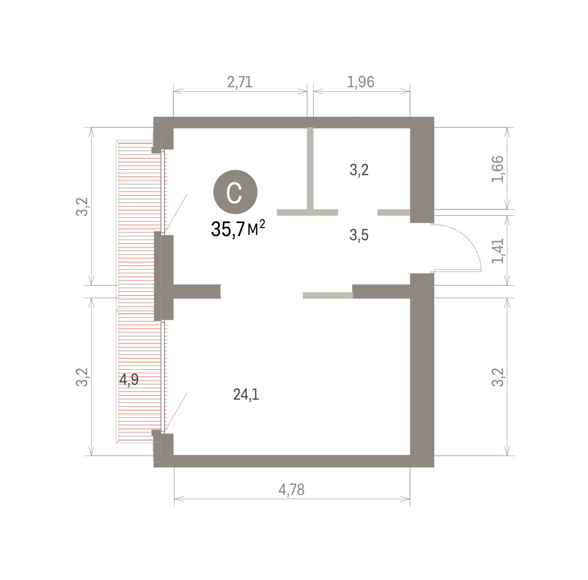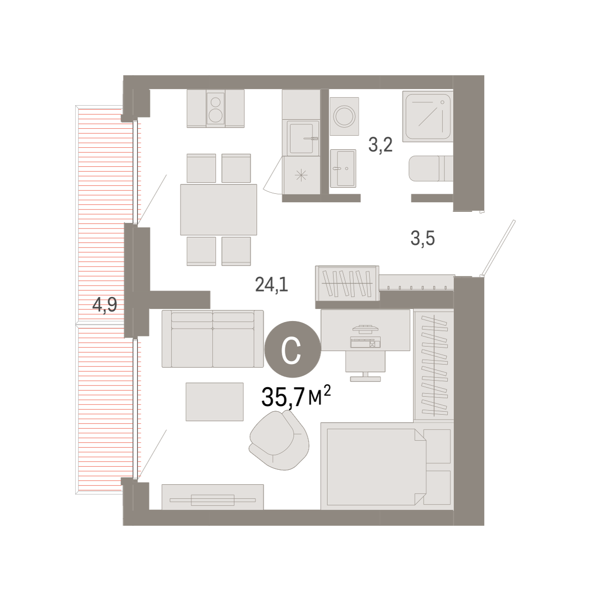 Студия в Бруснике в Академическом. Особенности планировки: балкон, предчистовая отделка. № квартиры в нашей базе: АКД04-Ж6.9.2.
