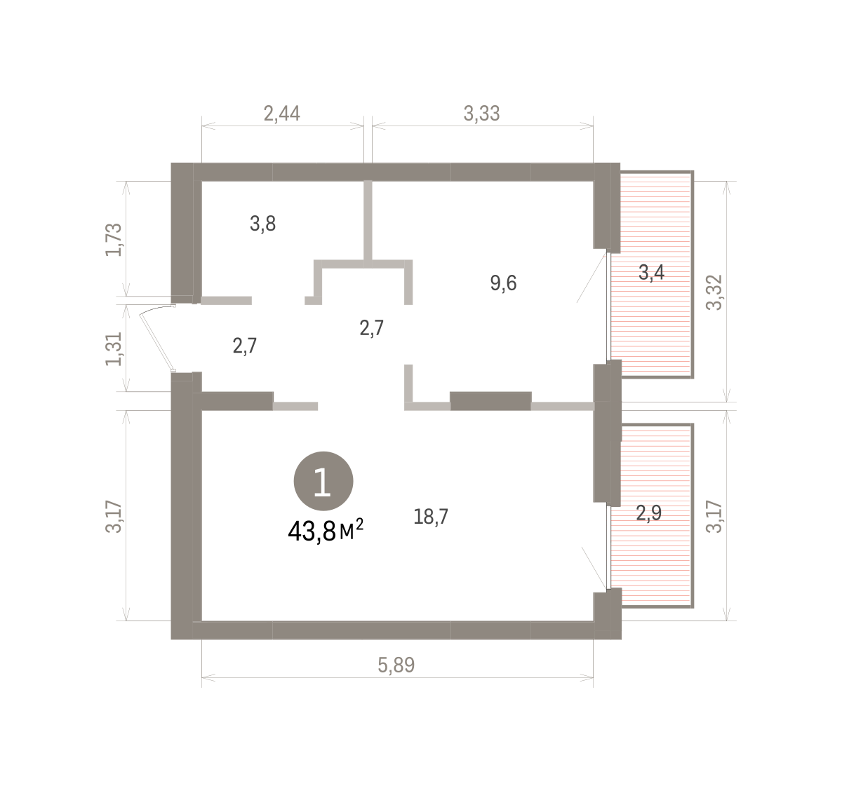 Квартира с кухней-гостиной и одной спальней в квартале «Депо». Особенности планировки: предчистовая отделка. № квартиры в нашей базе: ДЕП07-Ж4.4.4.