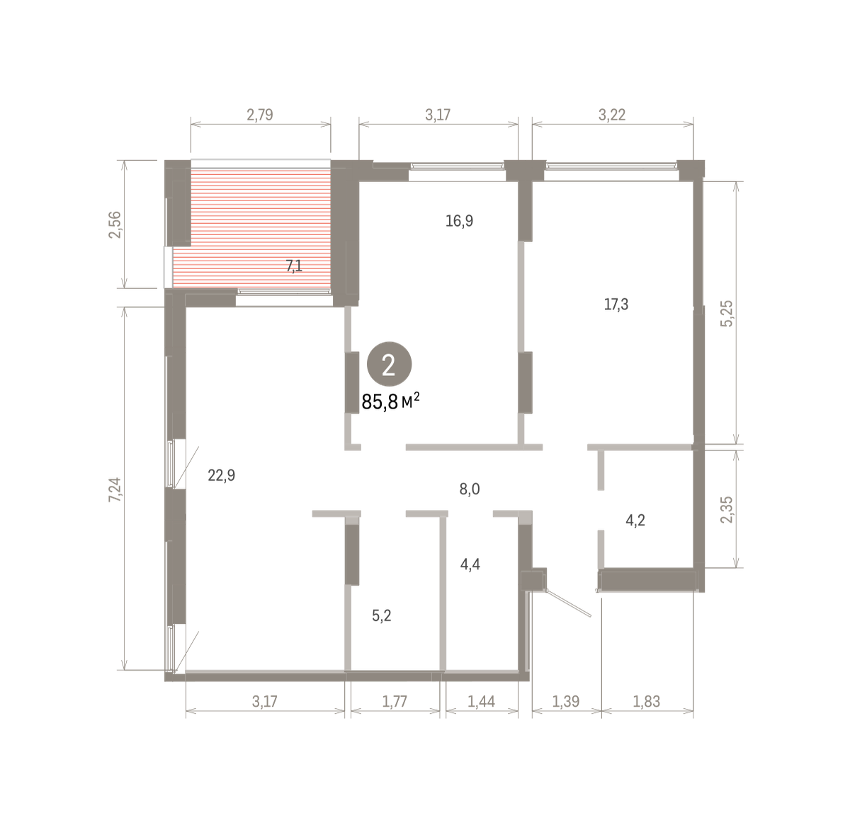 3-к квартира | 88.80 м² | 7 - 29 эт.
