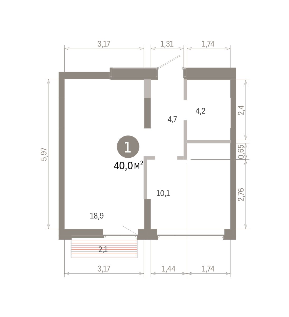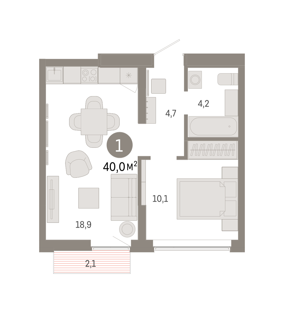 Квартира с кухней-гостиной и одной спальней в районе Шишимская горка. Особенности планировки: предчистовая отделка. № квартиры в нашей базе: ШГР16-Ж4.8.3.
