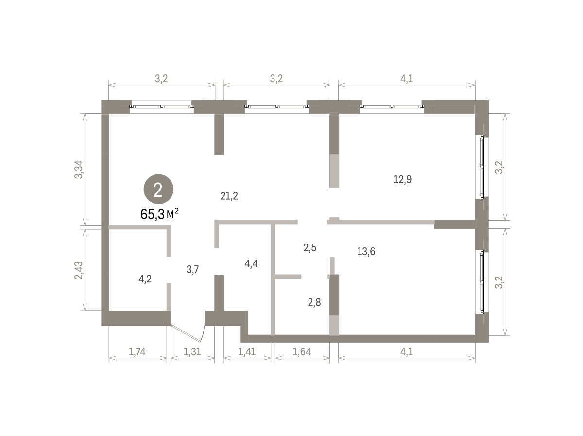 Продаётся с кладовой. Квартира с кухней-гостиной и двумя спальнями в Южных кварталах. Особенности планировки: предчистовая отделка. № квартиры в нашей базе: ЮКВ08-Ж3.3.2.