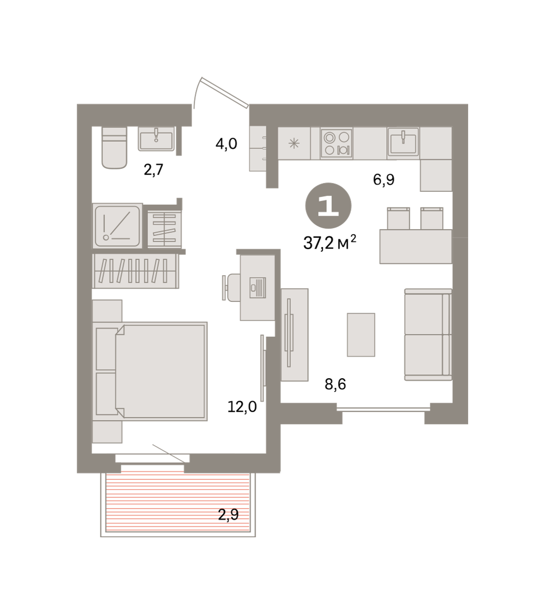 37.00 м² | 6 - 9 эт.