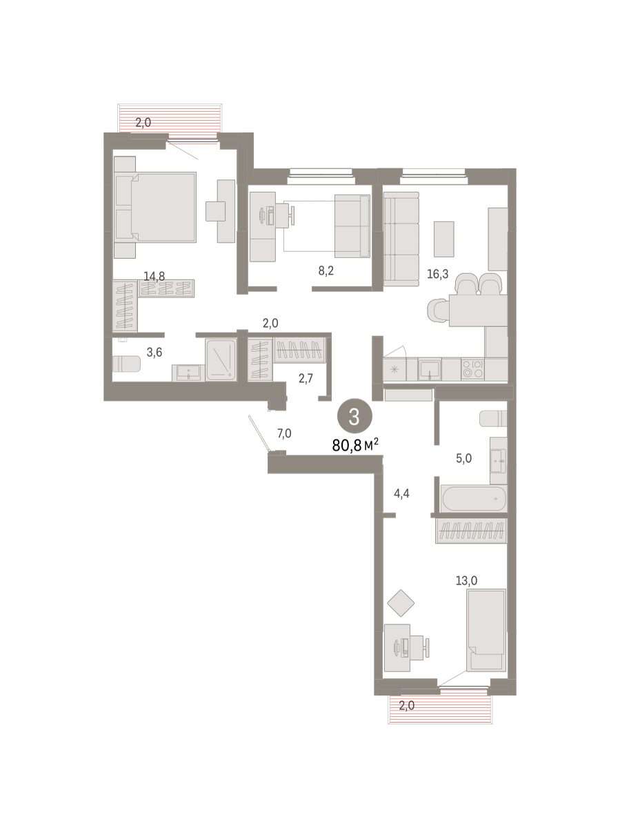 80.00 м² | 7 - 9 эт.