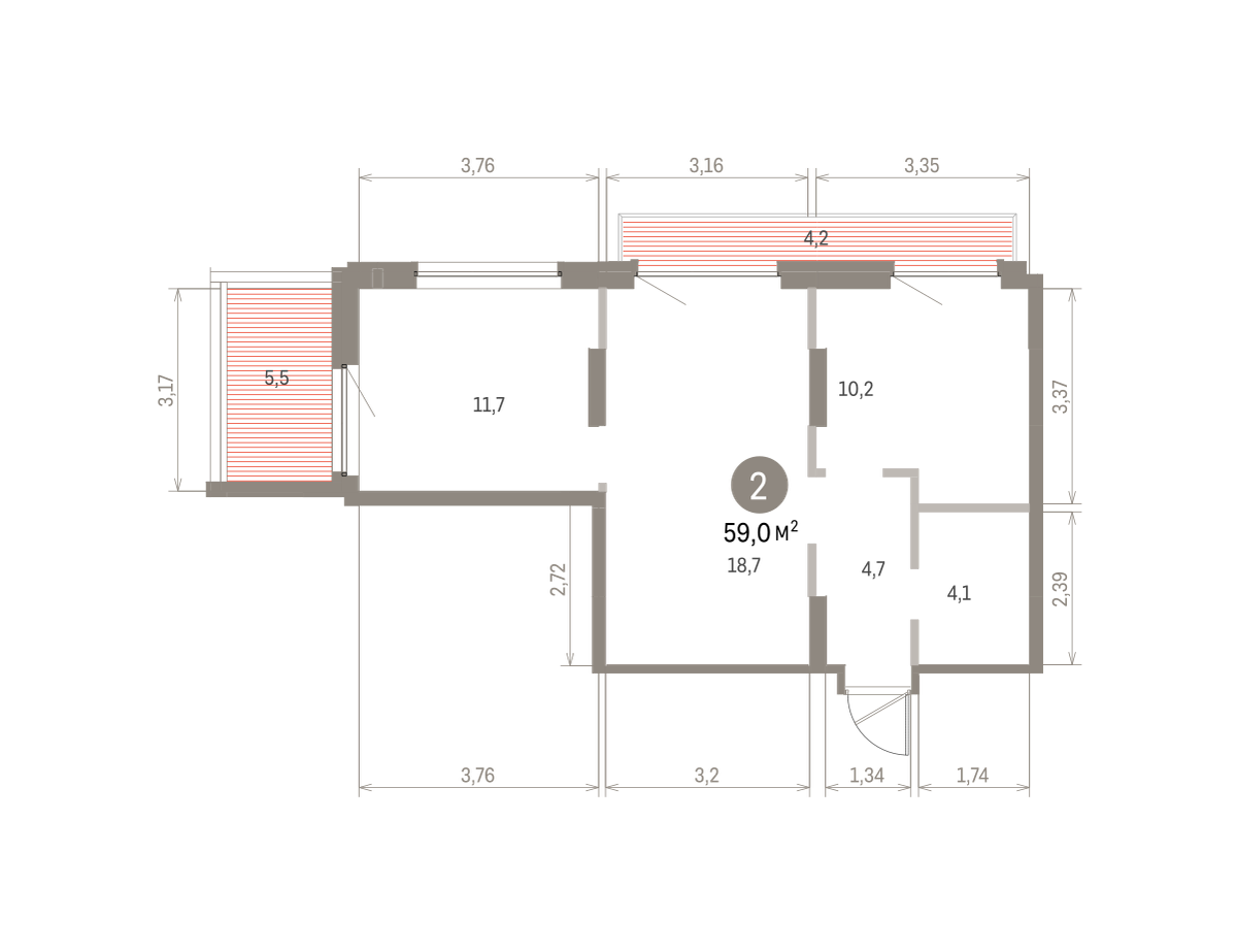 59.00 м² | 9 - 9 эт.