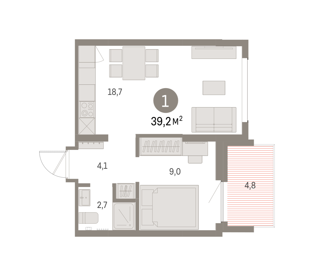39.00 м² | 7 - 9 эт.