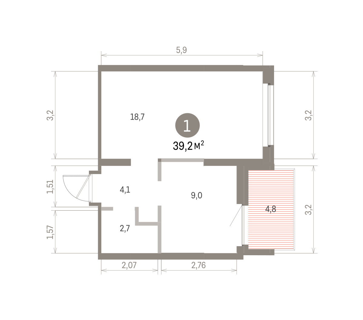 39.00 м² | 5 - 9 эт.