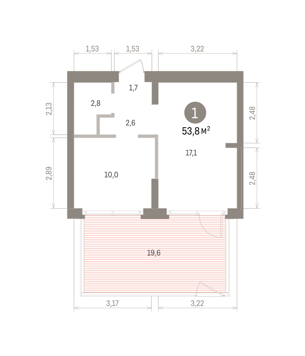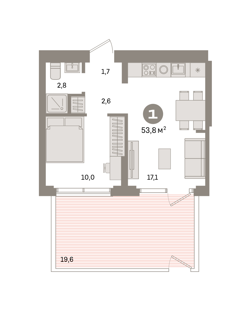 Квартира с кухней-гостиной и одной спальней в квартале «Депо». Особенности планировки: предчистовая отделка. № квартиры в нашей базе: ДЕП07-Ж2.2.1.
