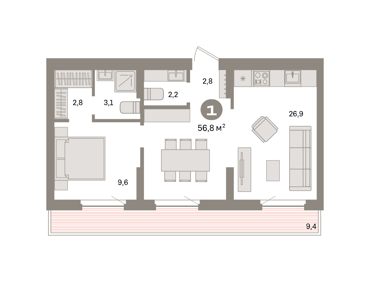 Продаётся с кладовой. Квартира с кухней-гостиной и одной спальней в квартале «Депо». Особенности планировки: предчистовая отделка, терраса на крыше. № квартиры в нашей базе: ДЕП04-Ж6.8.2.