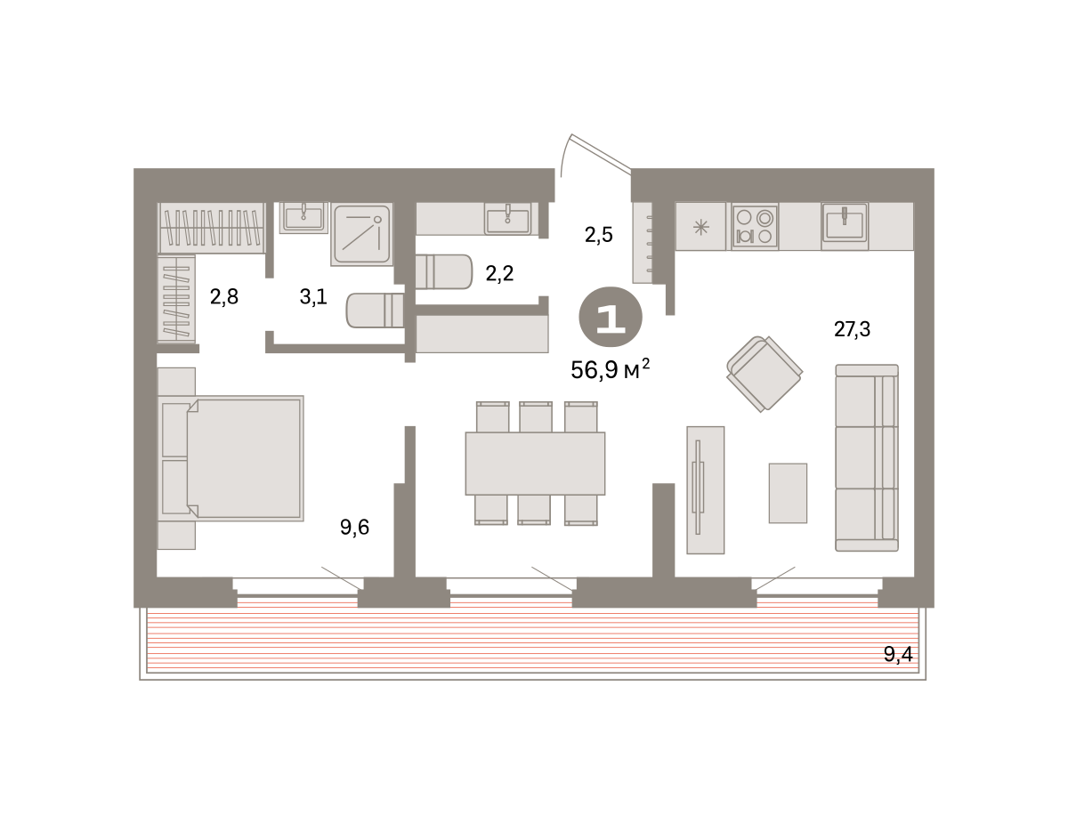 Продаётся с кладовой. Квартира с кухней-гостиной и одной спальней в квартале «Депо». Особенности планировки: предчистовая отделка, терраса на крыше. № квартиры в нашей базе: ДЕП04-Ж7.8.2.