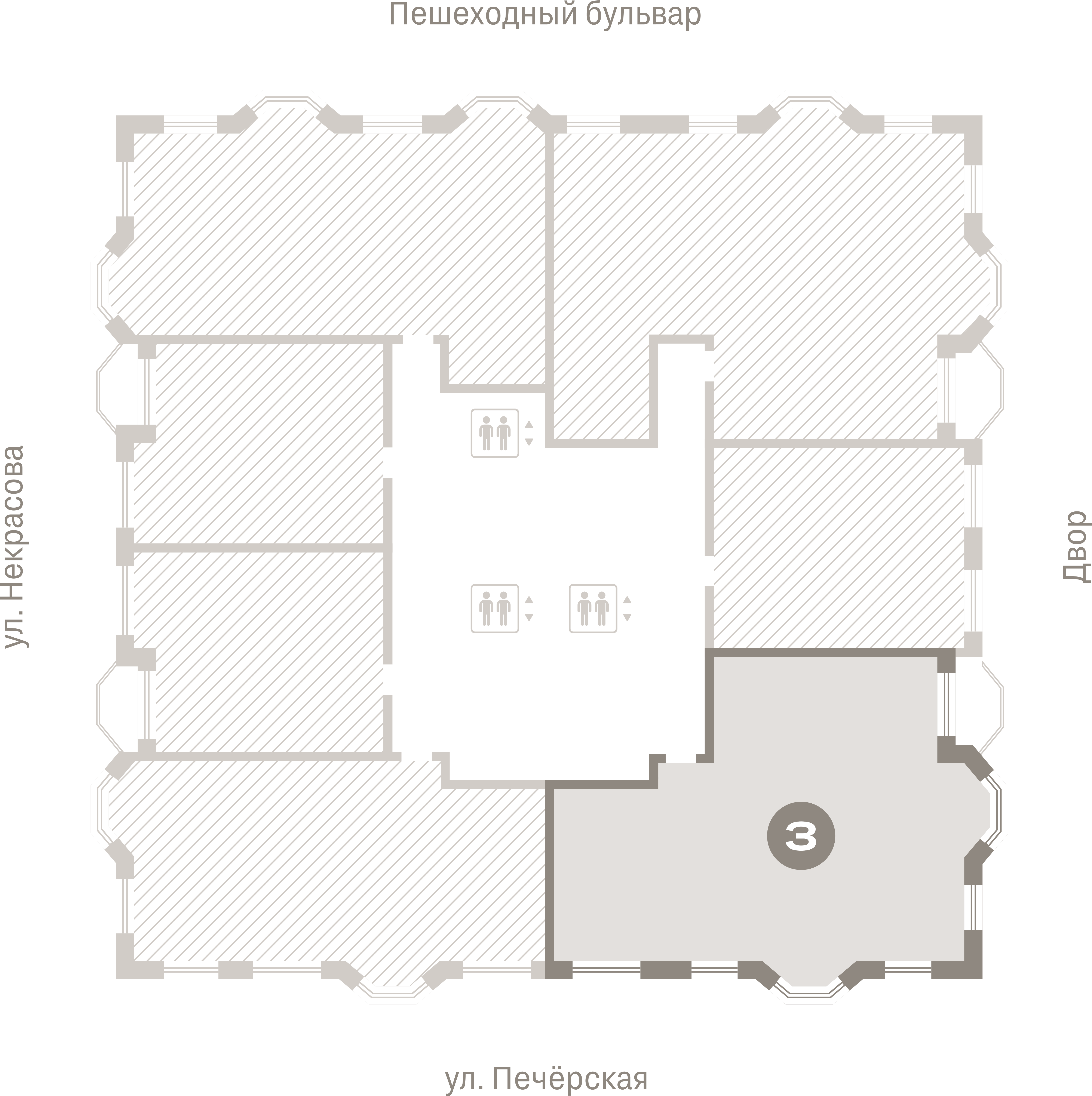 Квартира с кухней-гостиной и тремя спальнями в квартале «На Некрасова». Особенности планировки: предчистовая отделка, разнесённые спальни. № квартиры в нашей базе: НКР02-Ж1.17.7.
