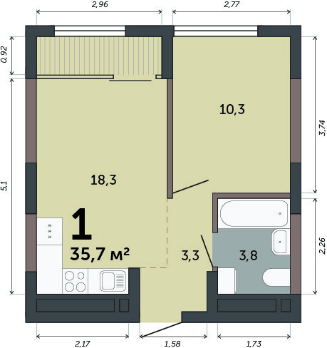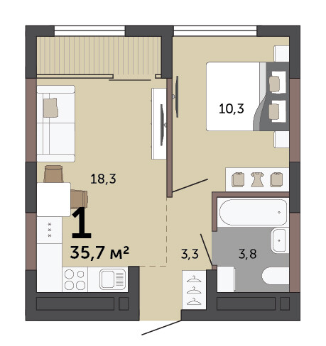 35.70 м² | 12 - 15 эт.