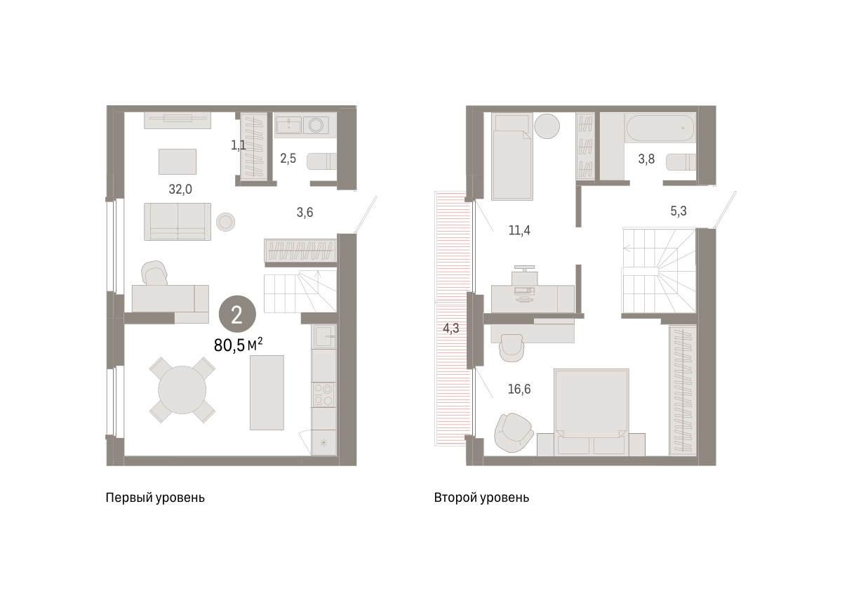 Продаётся с кладовой. Двухуровневая квартира с кухней-гостиной и двумя спальнями в Бруснике в Академическом. Особенности планировки: балкон, двухуровневая, предчистовая отделка, разнесённые спальни. № квартиры в нашей базе: АКД04-Ж1.8.7.