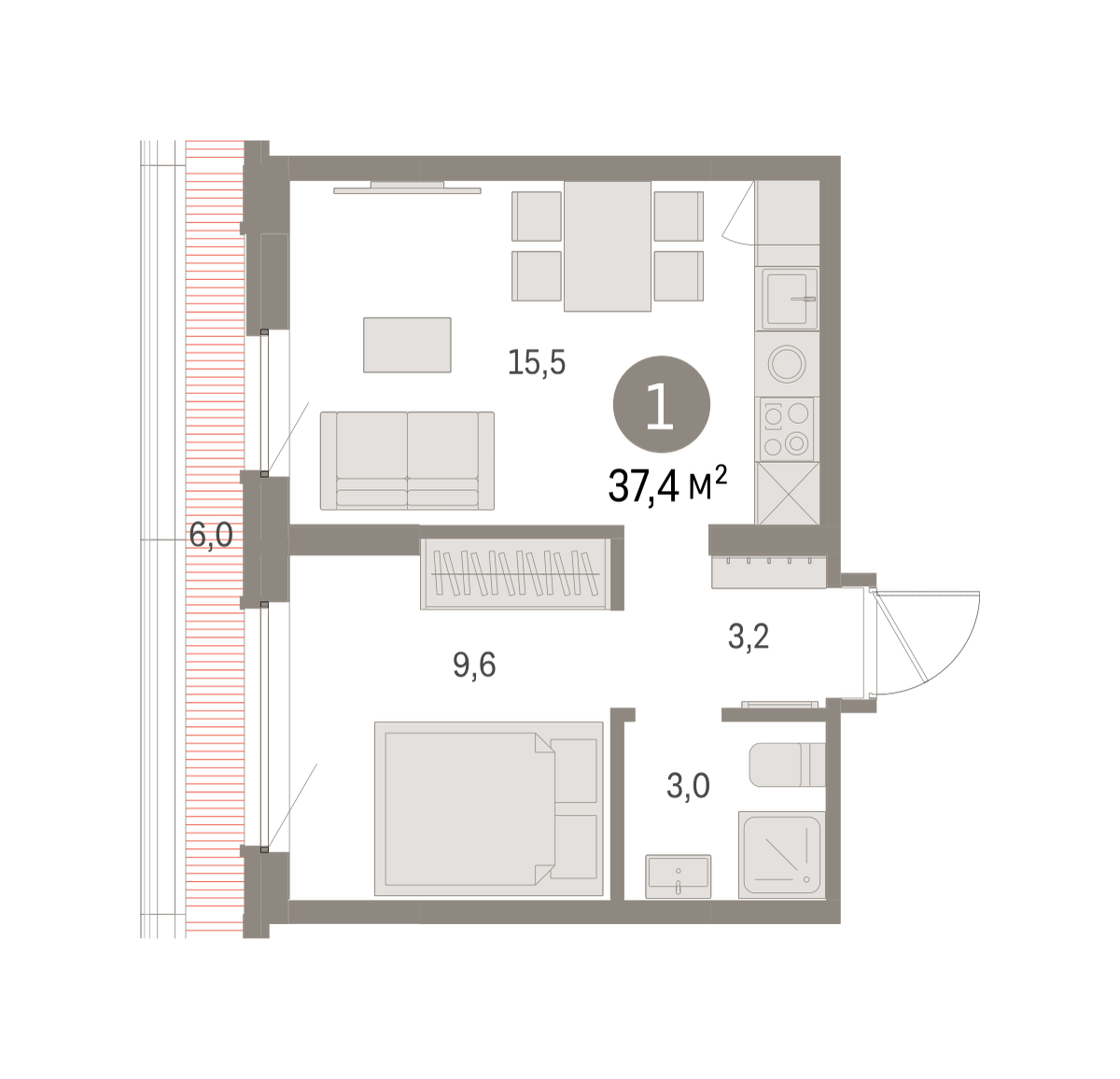 37.00 м² | 8 - 9 эт.
