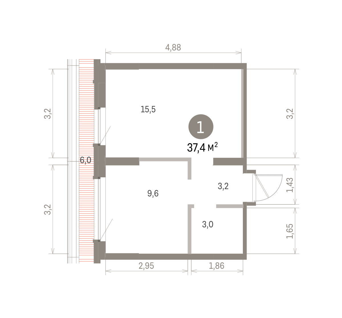 39.00 м² | 6 - 9 эт.
