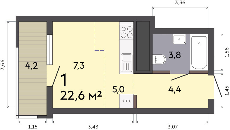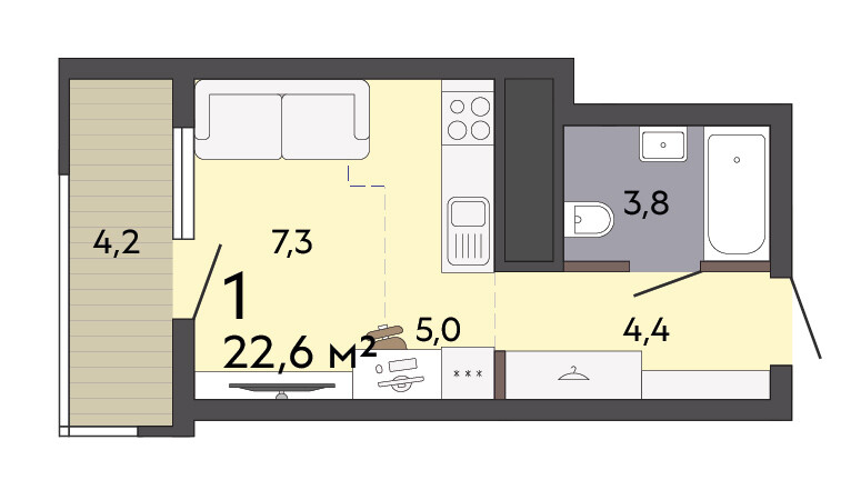 22.20 м² | 22 - 25 эт.