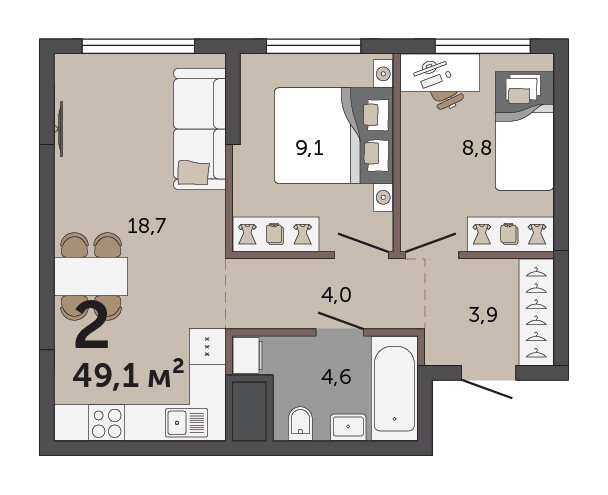 49.30 м² | 26 - 30 эт.
