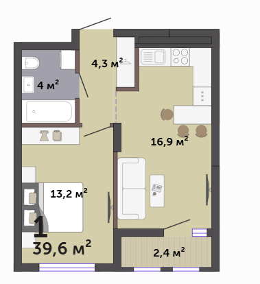 39.60 м² | 8 - 19 эт.