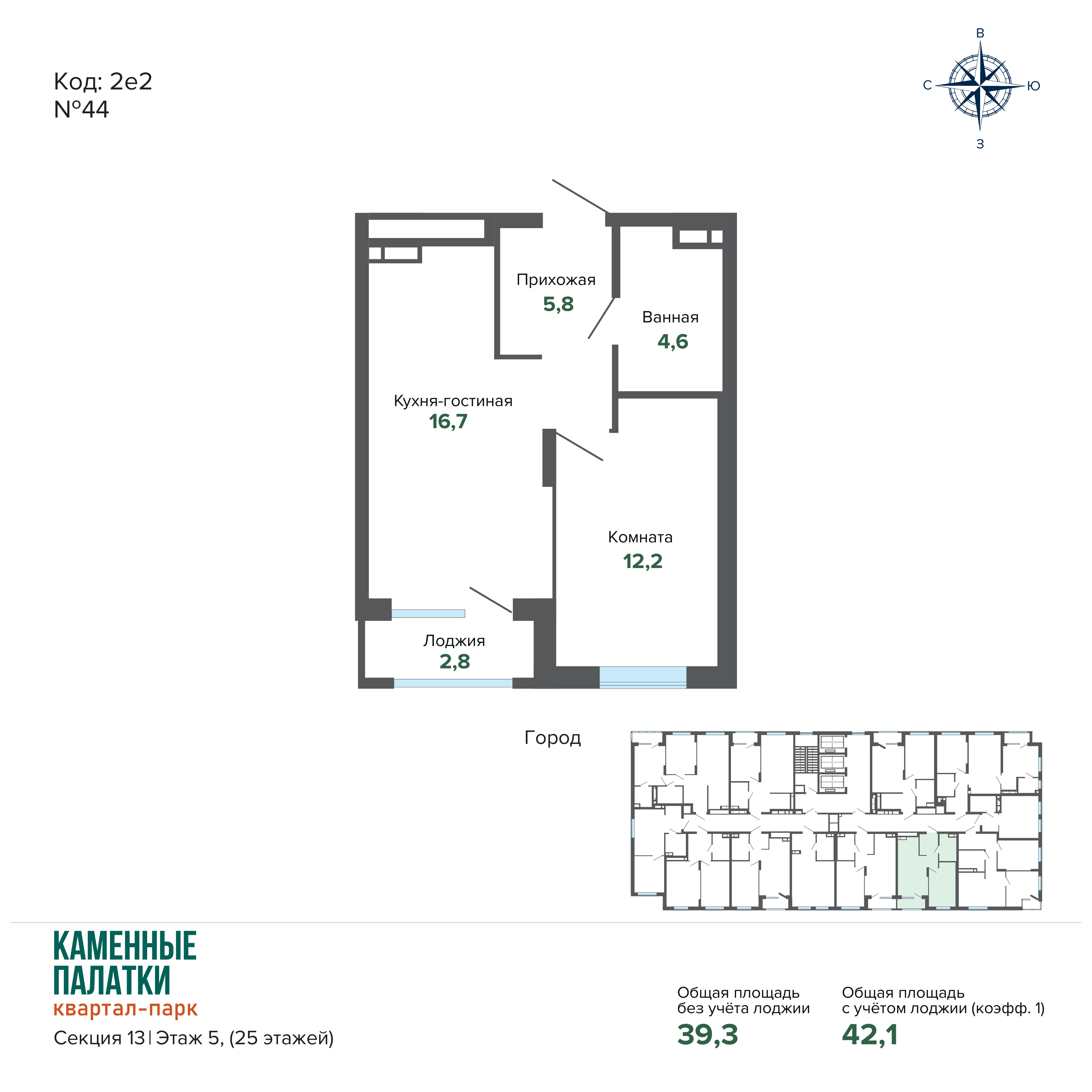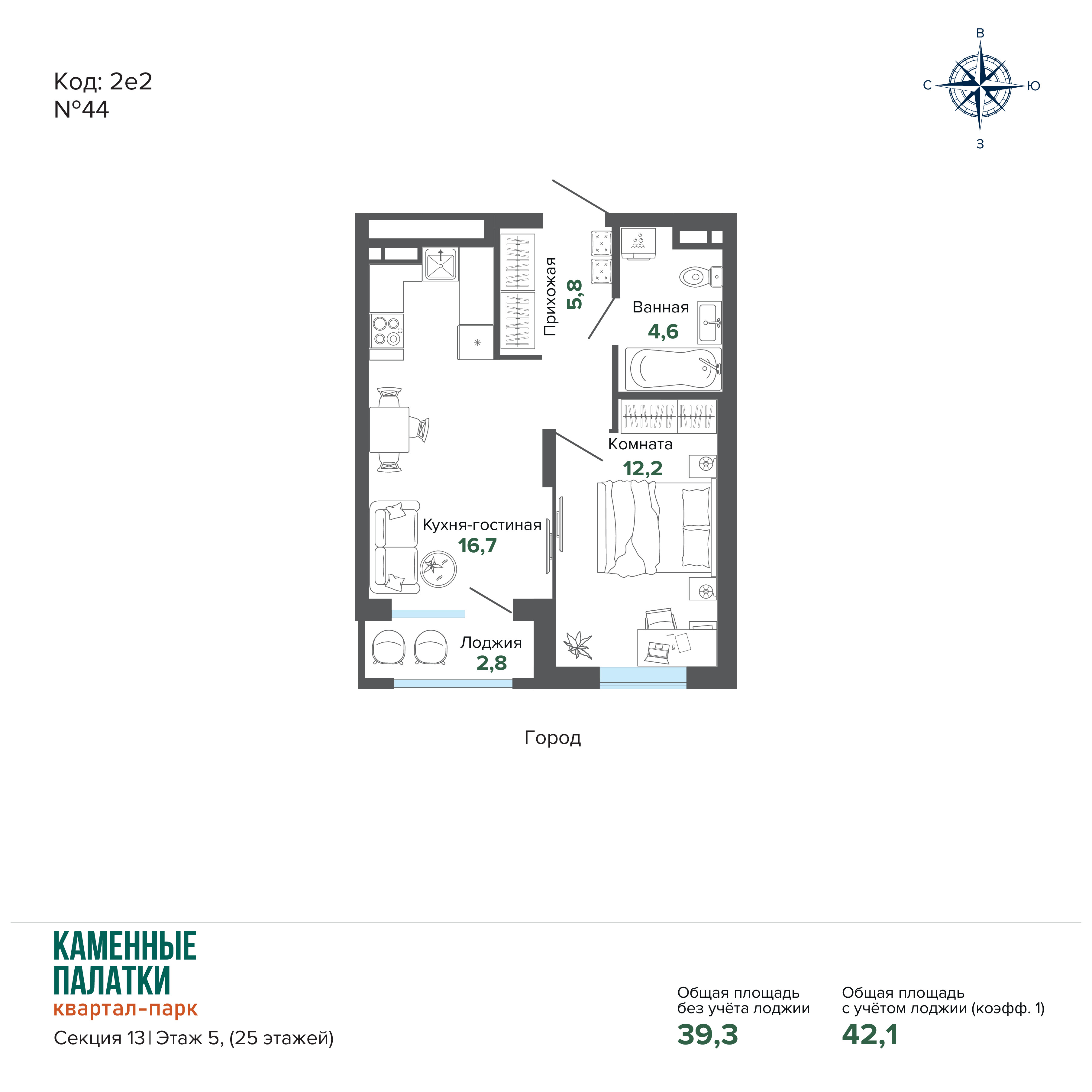 42.00 м² | 16 - 16 эт.