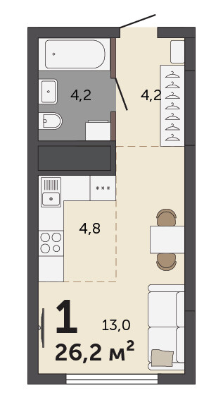 26.20 м² | 26 - 30 эт.