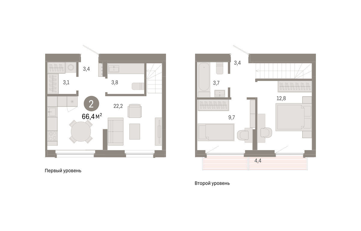 Продаётся с кладовой. Двухуровневая квартира с кухней-гостиной и двумя спальнями в Бруснике в Академическом. Особенности планировки: балкон, двухуровневая, предчистовая отделка, разнесённые спальни. № квартиры в нашей базе: АКД04-Ж8.8.4.