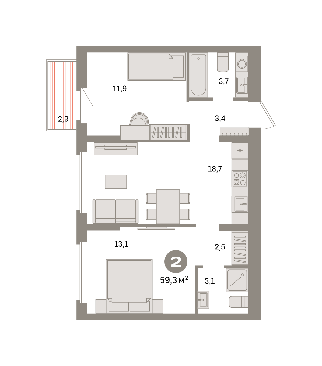 59.00 м² | 6 - 9 эт.