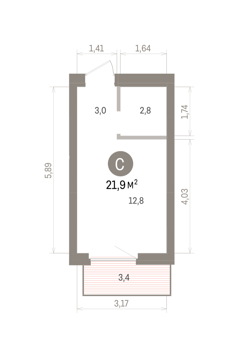 Студия в квартале «Депо». Особенности планировки: балкон, предчистовая отделка. № квартиры в нашей базе: ДЕП07-Ж5.3.3.