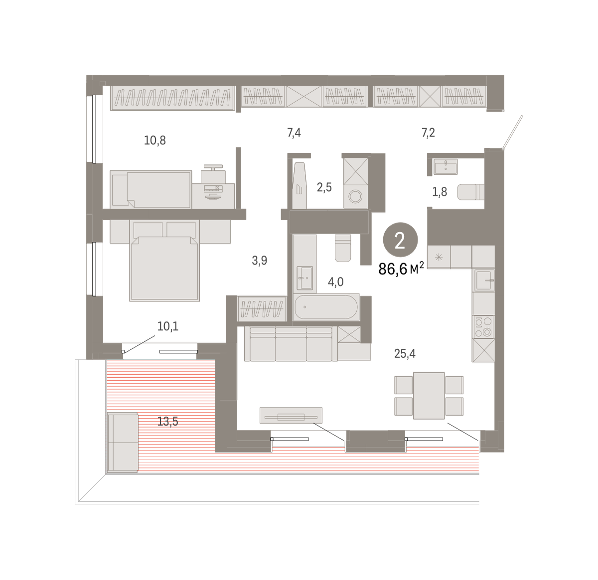 86.00 м² | 7 - 8 эт.