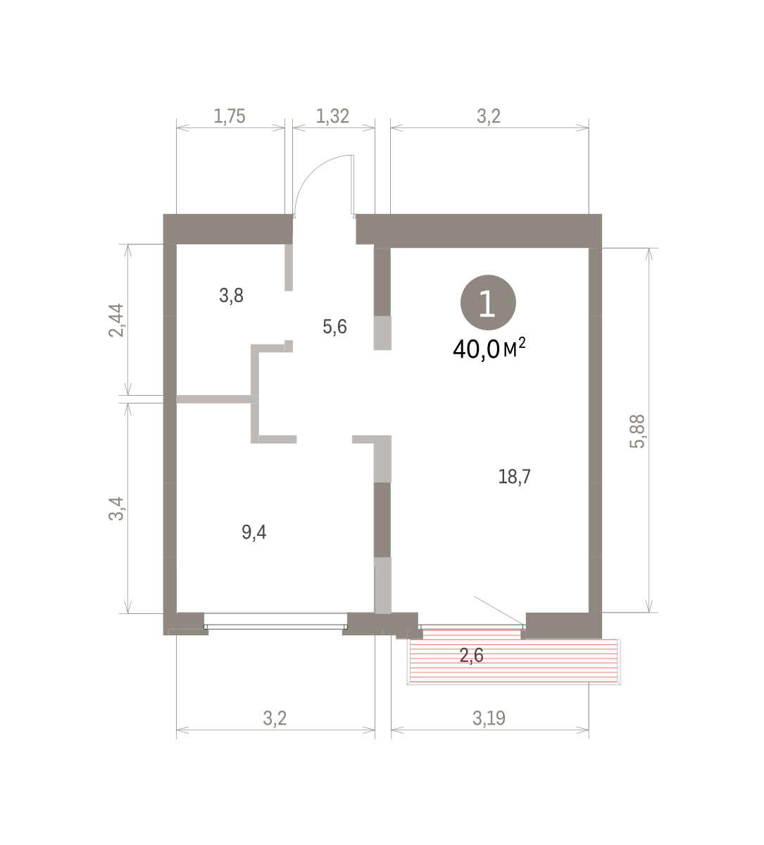 39.00 м² | 5 - 9 эт.