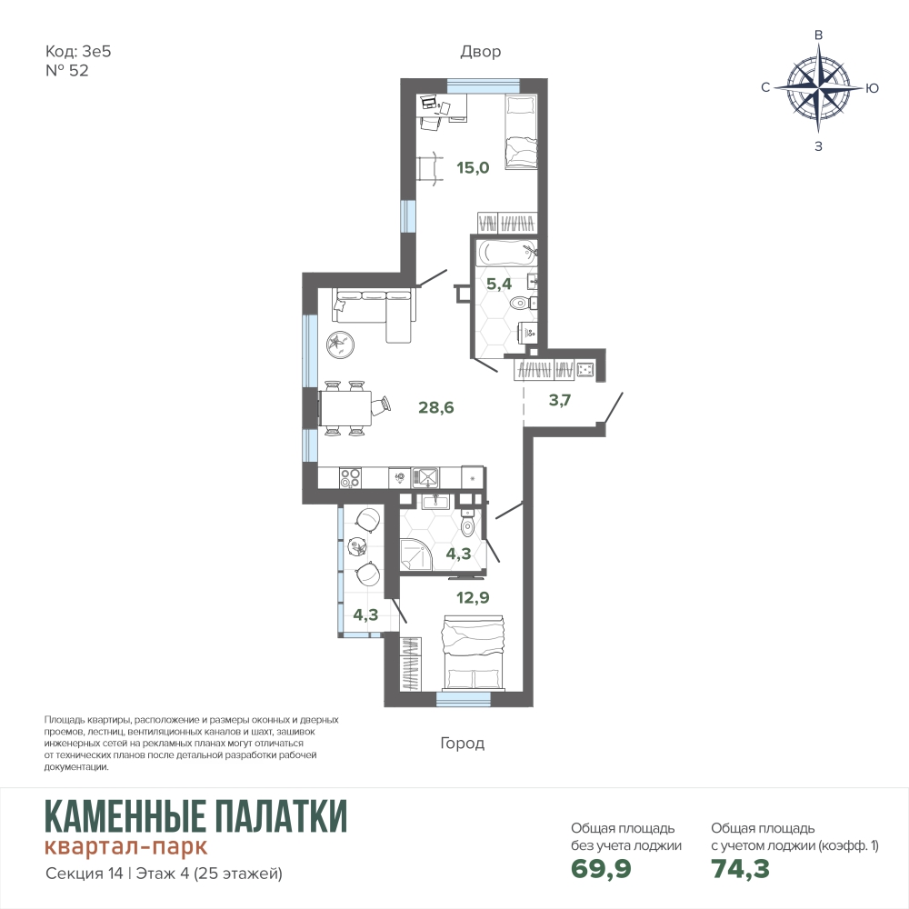 • Просторная закрытая придомовая территория;