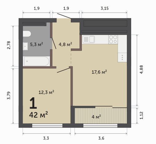 42.00 м² | 15 - 17 эт.