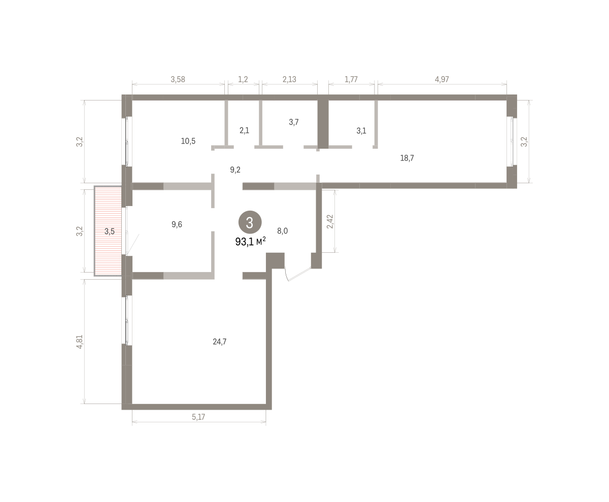 Продаётся с кладовой. Квартира с кухней-гостиной и тремя спальнями в Южных кварталах. Особенности планировки: балкон, окна на две стороны, предчистовая отделка, разнесённые спальни. № квартиры в нашей базе: ЮКВ08-Ж5.3.1.