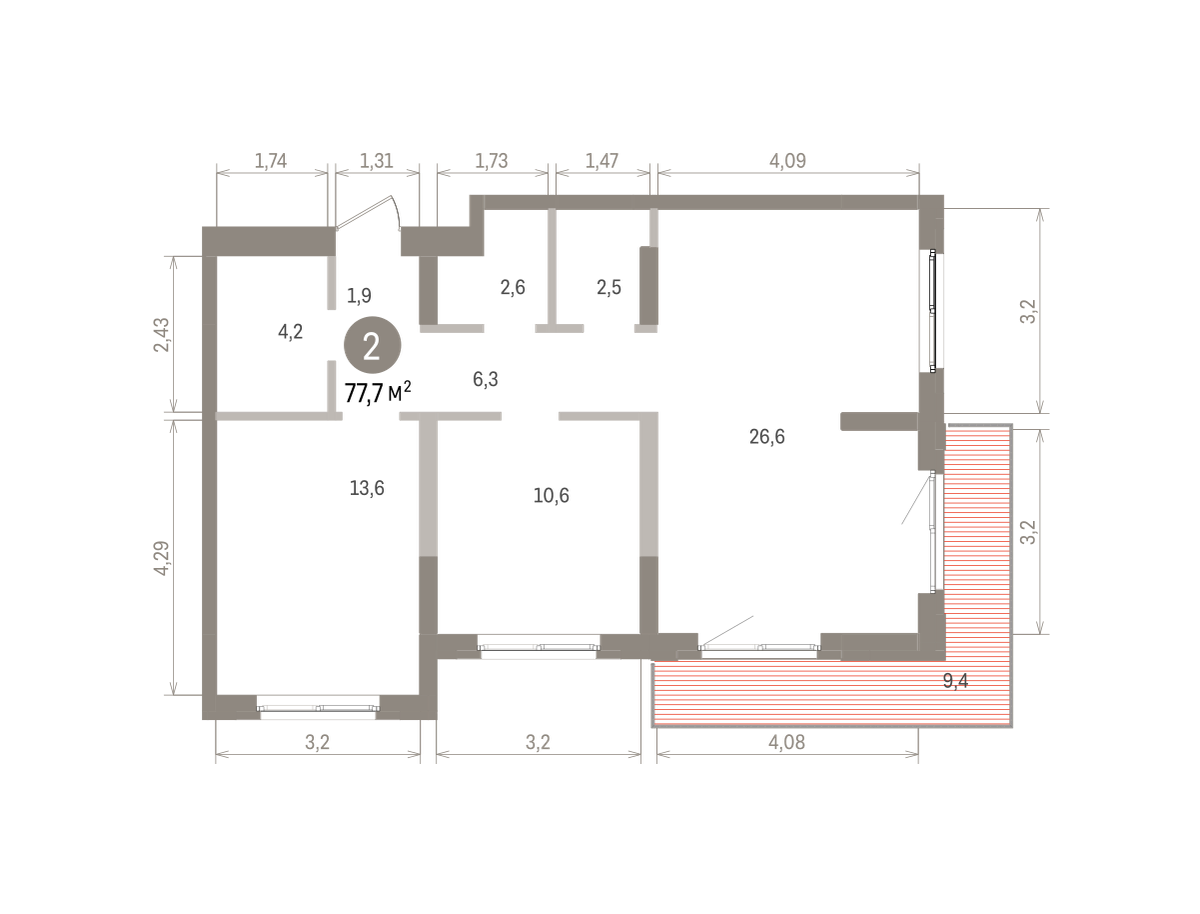 Квартира с кухней-гостиной и двумя спальнями в Южных кварталах. Особенности планировки: балкон, предчистовая отделка. № квартиры в нашей базе: ЮКВ08-Ж5.4.5.