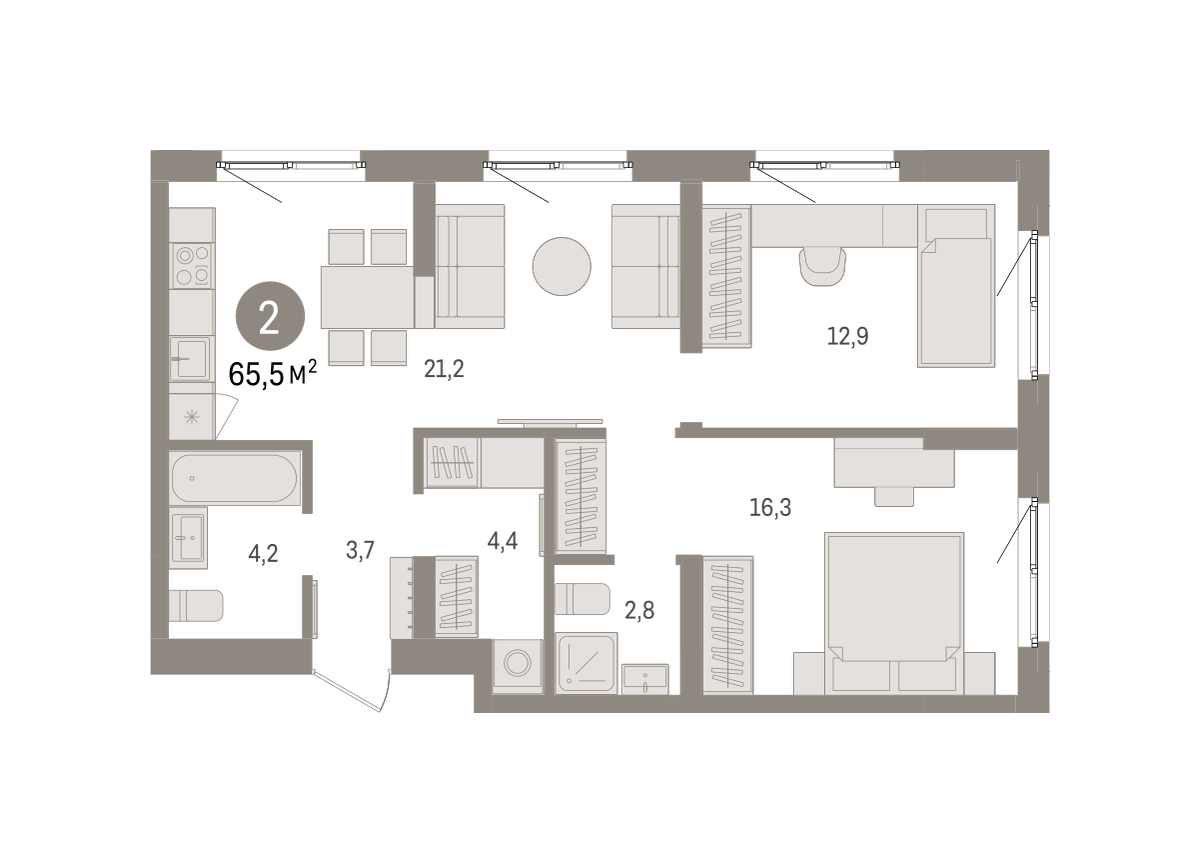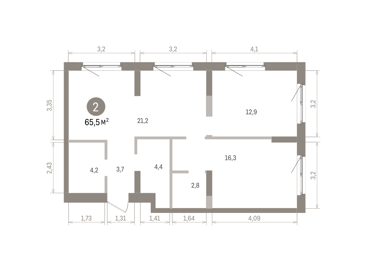 65.00 м² | 2 - 8 эт.