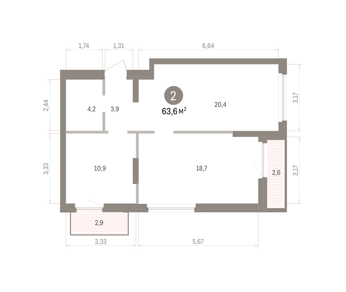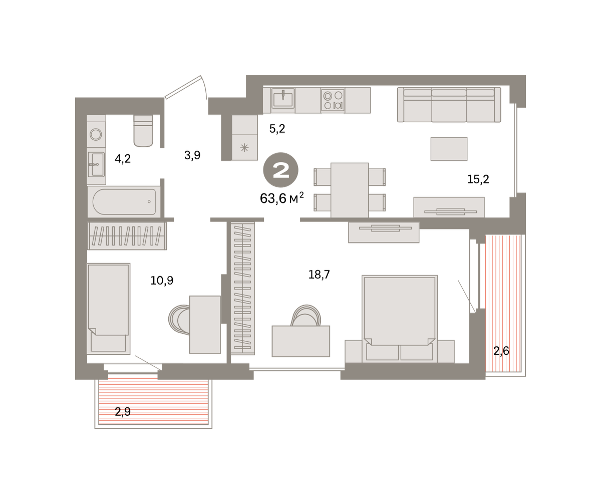 Продаётся с кладовой. Квартира с кухней-гостиной и двумя спальнями в квартале «Депо». Особенности планировки: балкон, предчистовая отделка. № квартиры в нашей базе: ДЕП07-Ж4.6.5.