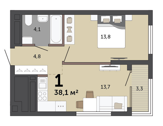 38.10 м² | 26 - 30 эт.