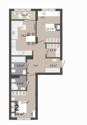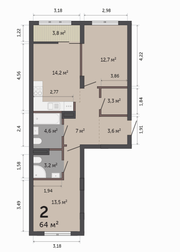 1-к квартира | 38.80 м² | 22 - 26 эт.