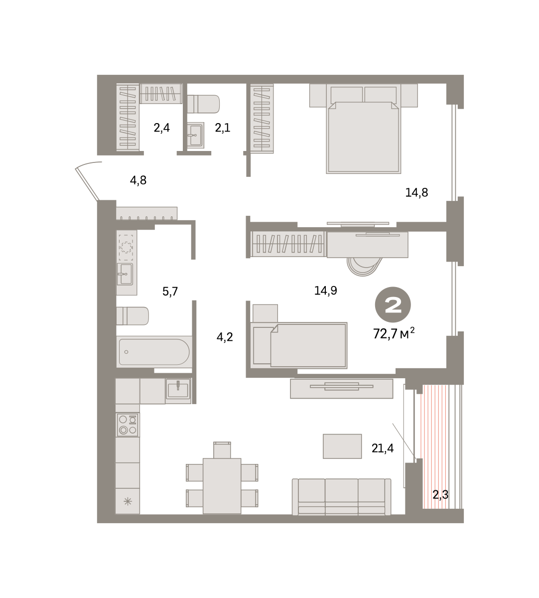 Продаётся с кладовой. Квартира с кухней-гостиной и двумя спальнями в квартале «Депо». Особенности планировки: вид во двор, второй санузел, гардеробная, лоджия, предчистовая отделка. № квартиры в нашей базе: ДЕП07-Ж1.10.2.