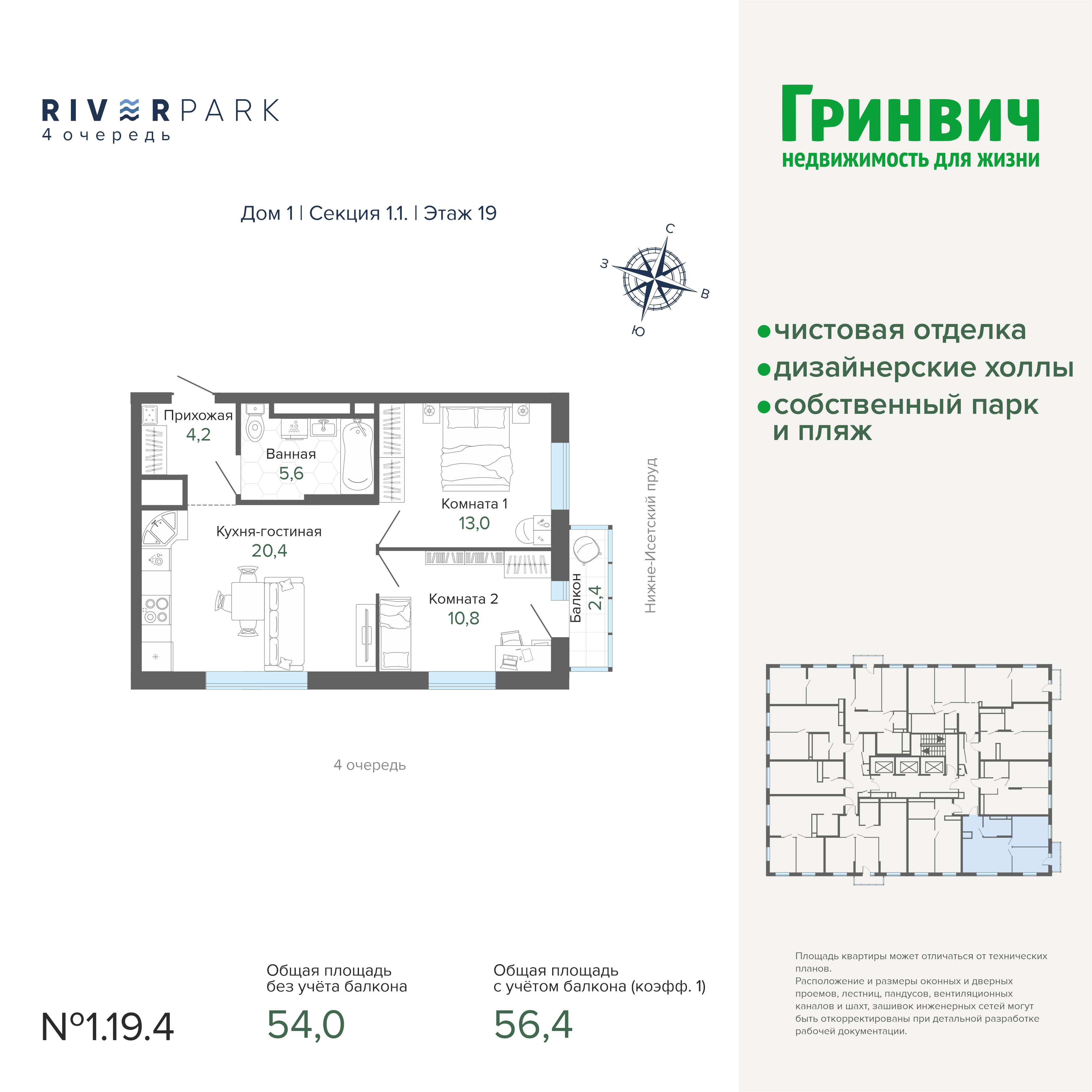 1-к квартира | 38.80 м² | 22 - 26 эт.