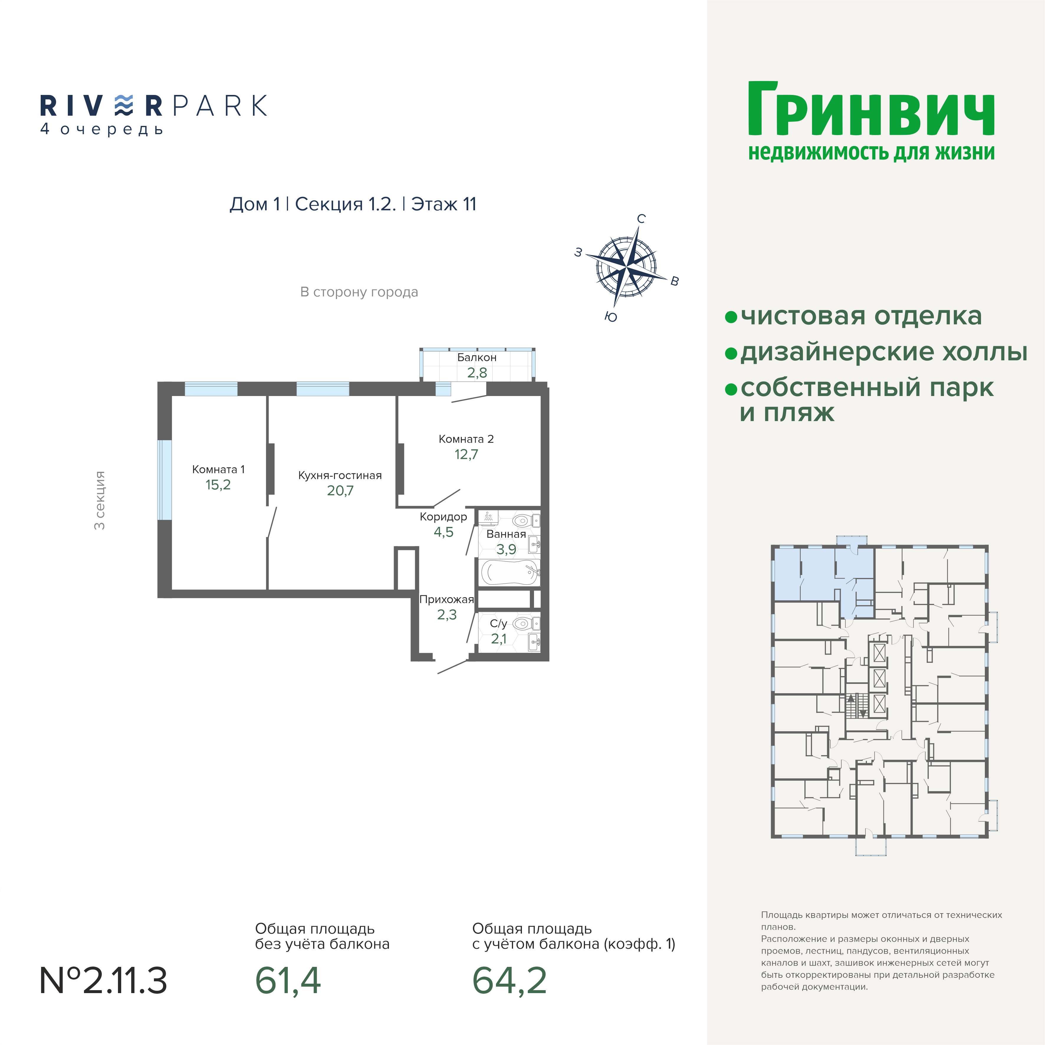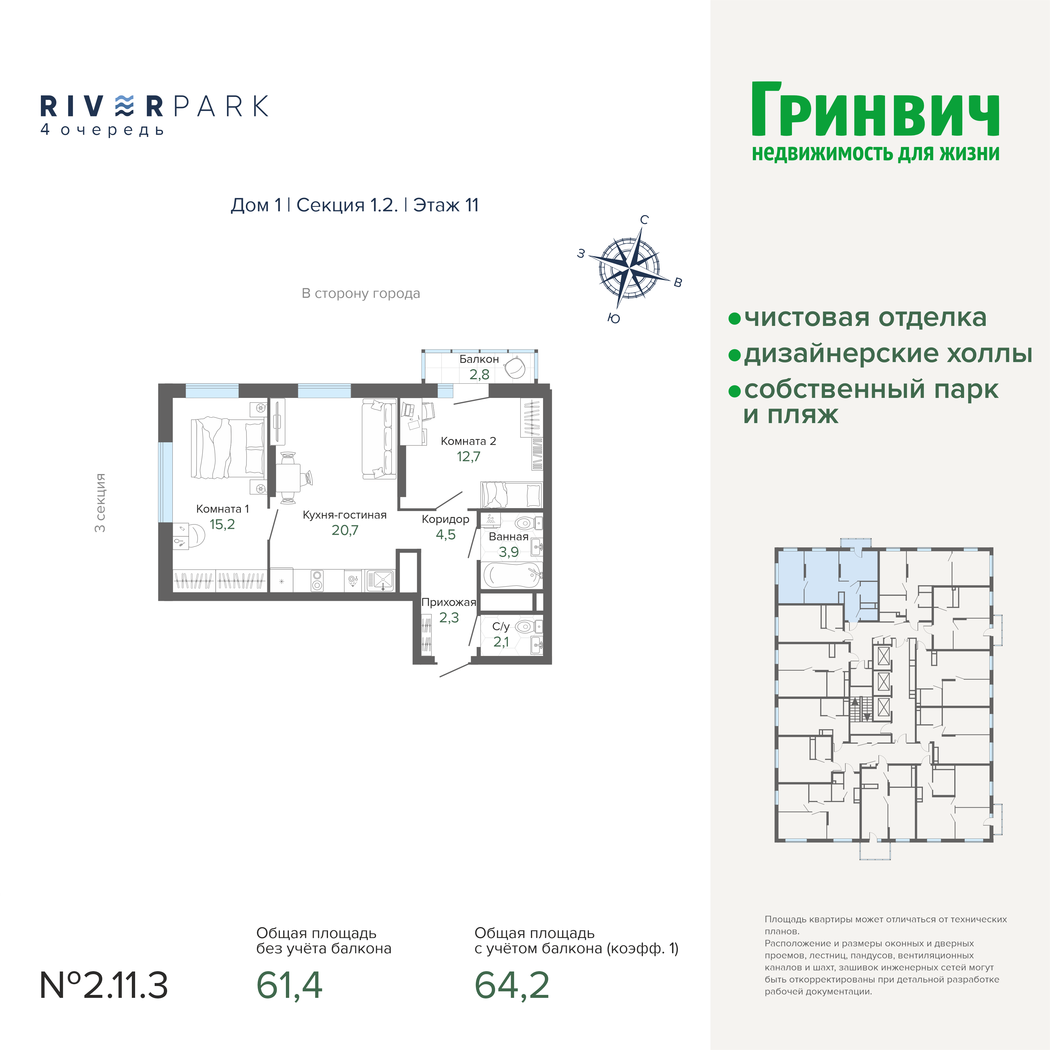 61.30 м² | 2 - 19 эт.