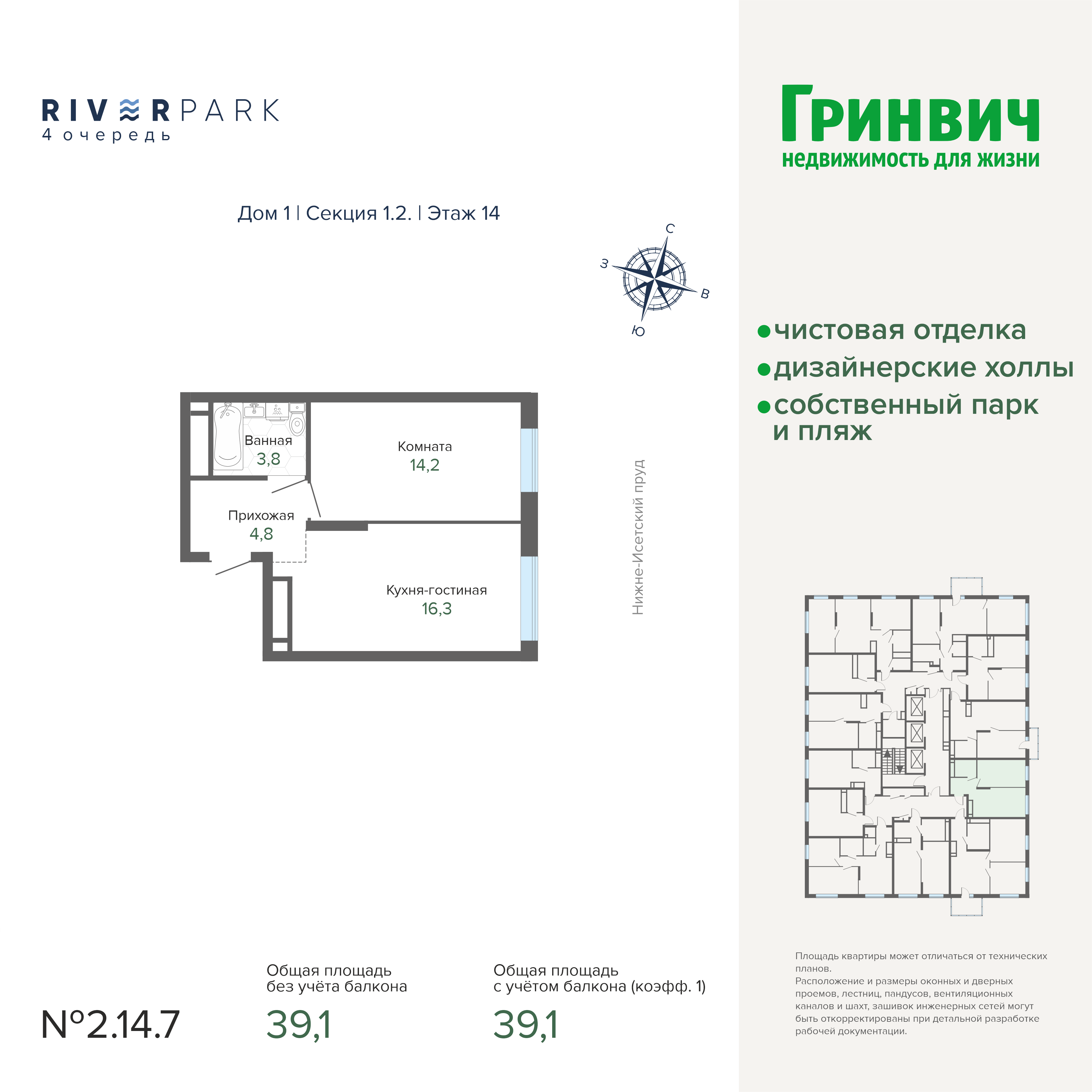 1-к квартира | 42.20 м² | 16 - 16 эт.
