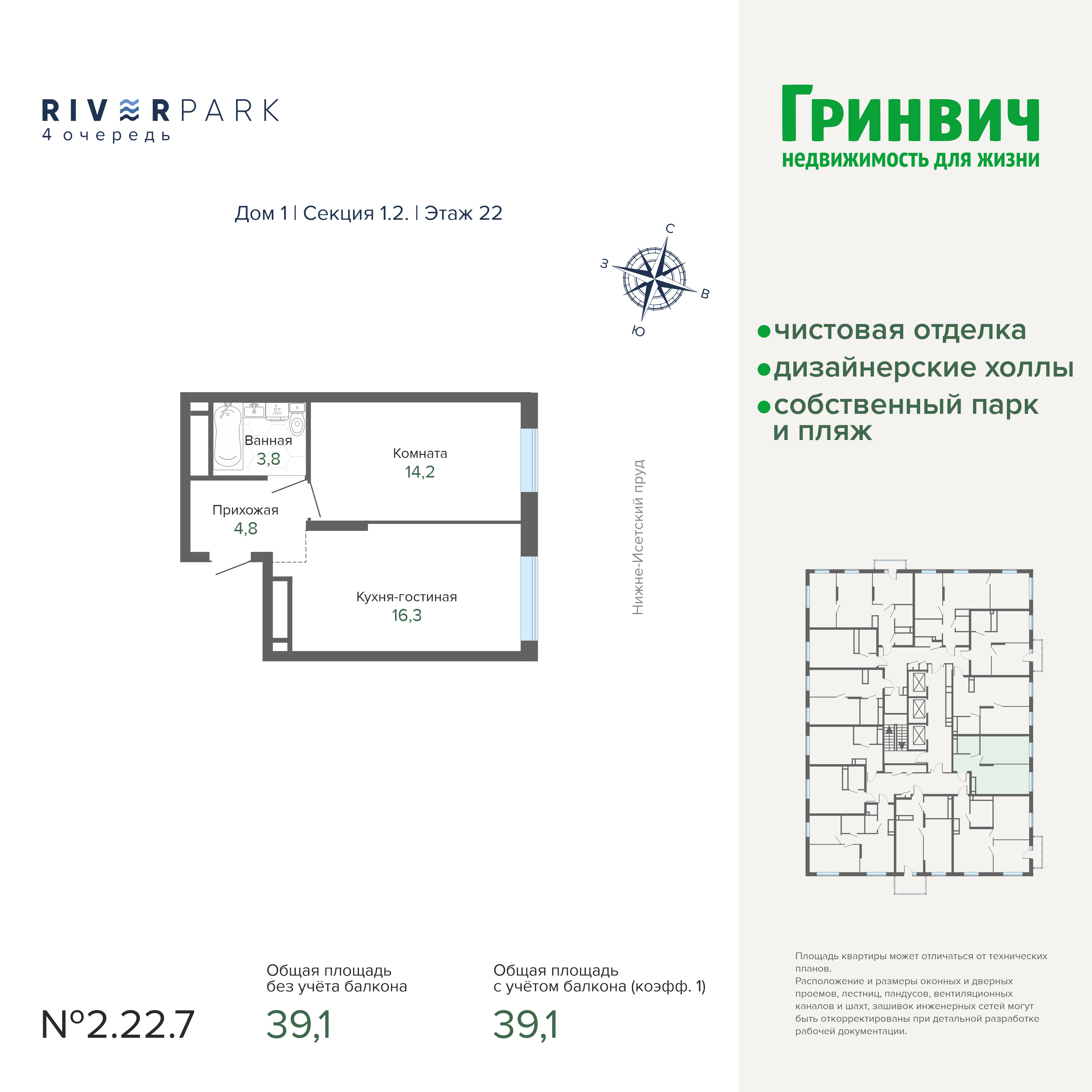 39.12 м² | 22 - 25 эт.