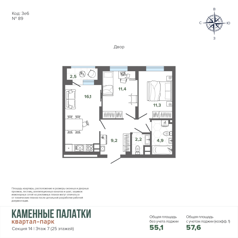 57.64 м² | 7 - 25 эт.