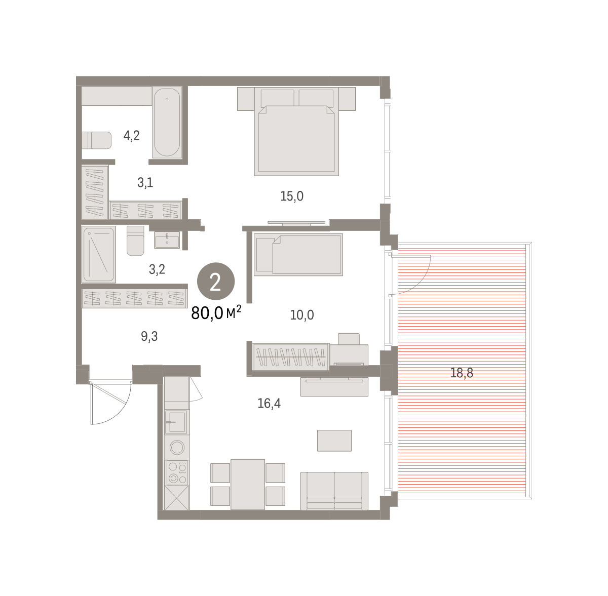 Продаётся с кладовой. Квартира с кухней-гостиной и двумя спальнями в Бруснике в Академическом. Особенности планировки: вид во двор, гардеробная, мастер-спальня, окна в пол, предчистовая отделка, терраса. № квартиры в нашей базе: АКД05-Ж8.1.2.