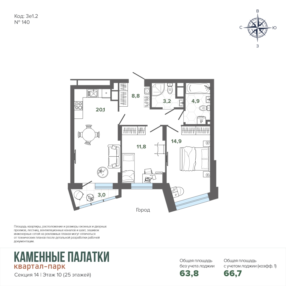 66.74 м² | 10 - 25 эт.