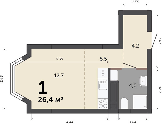 26.40 м² | 2 - 23 эт.