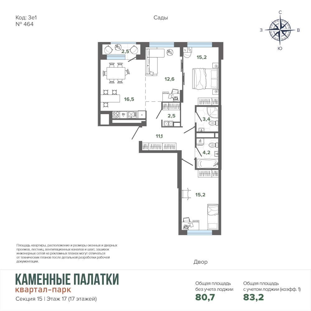84.30 м² | 9 - 15 эт.